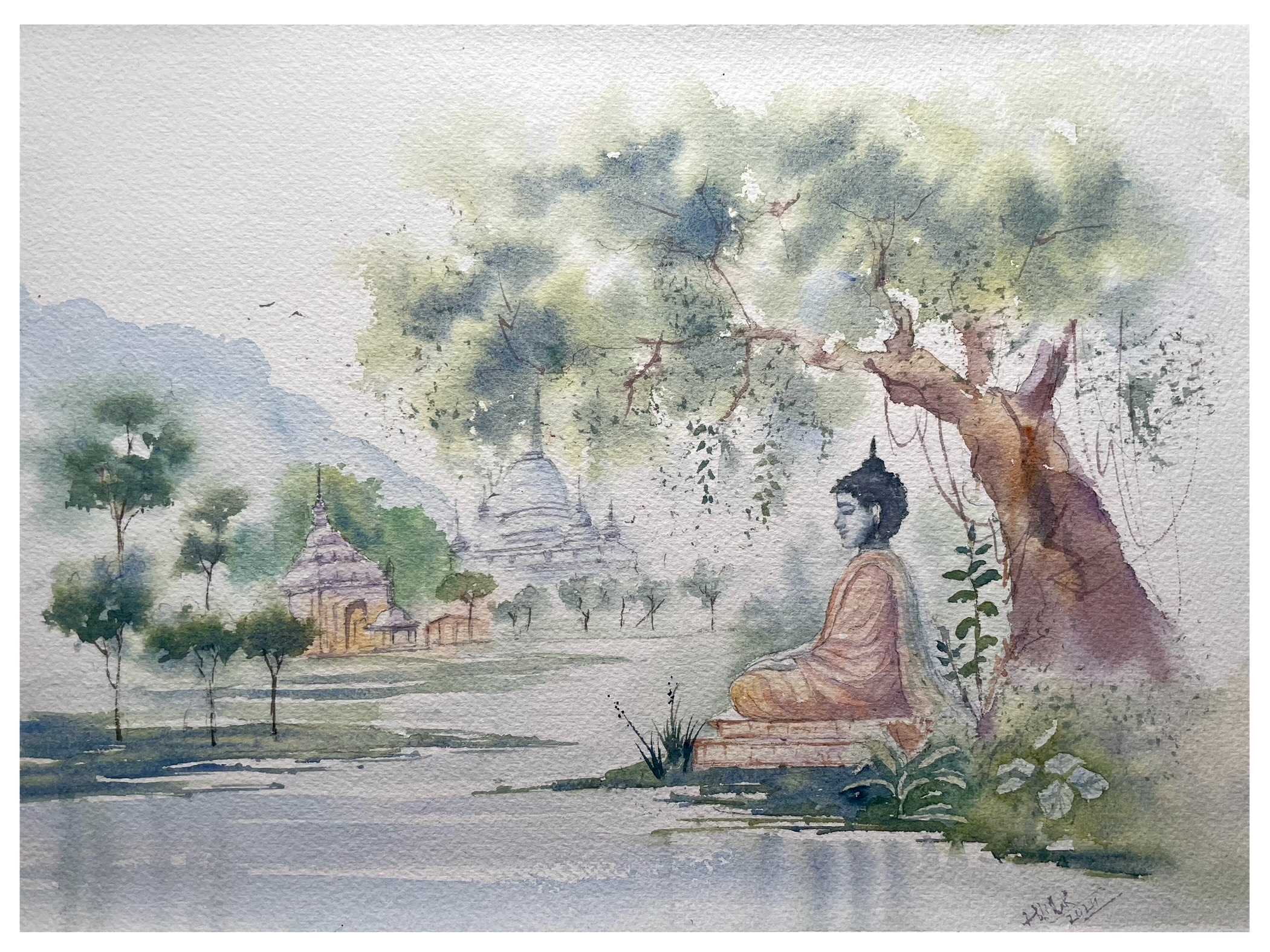 Through this process, I aimed to create a painting that takes inspiration from Buddha and showcases the fluid beauty of watercolor. This journey under the Bodhi Tree in my painting is a testament to the spiritual heritage of Bihar and my personal connection to it.